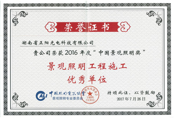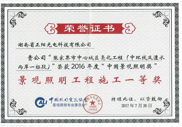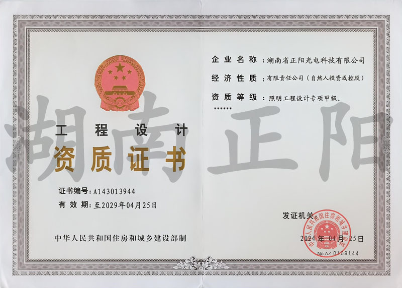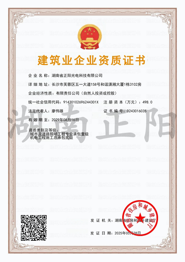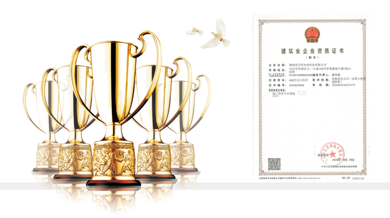 湖南省正陽光電科技有限公司是一家從事亮化工程及大型燈光藝術(shù)的設(shè)計(jì)、制作、安裝和維護(hù)于一體的專業(yè)化公司。公司資質(zhì)齊全、管理嚴(yán)謹(jǐn)、技術(shù)先進(jìn)、實(shí)力雄厚,取得了城市及道路照明工程專業(yè)承包壹級資質(zhì)、照明工程設(shè)計(jì)專項(xiàng)甲級資質(zhì)、機(jī)電工程施工總承包貳級資質(zhì)、施工勞務(wù)等資質(zhì)、國家高新技術(shù)企業(yè)、國家“重質(zhì)量·守誠信”示范企業(yè)。